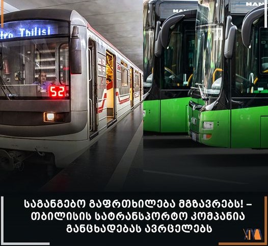 “სოციალურ ქსელში, კერძოდ კი Public transport Tbilisi-ს გვერდზე, ვრცელდება ინფორმაცია თბილისის სატრანსპორტო კომპანიის სამგზავრო ბარათის გათამაშებასთან დაკავშირებით. აღნიშნული ინფორმაცია არასწორია და მიზნად ისახავს მგზავრების შეცდომაში შეყვანას. მოვუწოდებთ ჩვენს მომხმარებლებს არ მიიღონ გათამაშებაში მონაწილეობა”,- აღნიშნულია განცხადებაში.